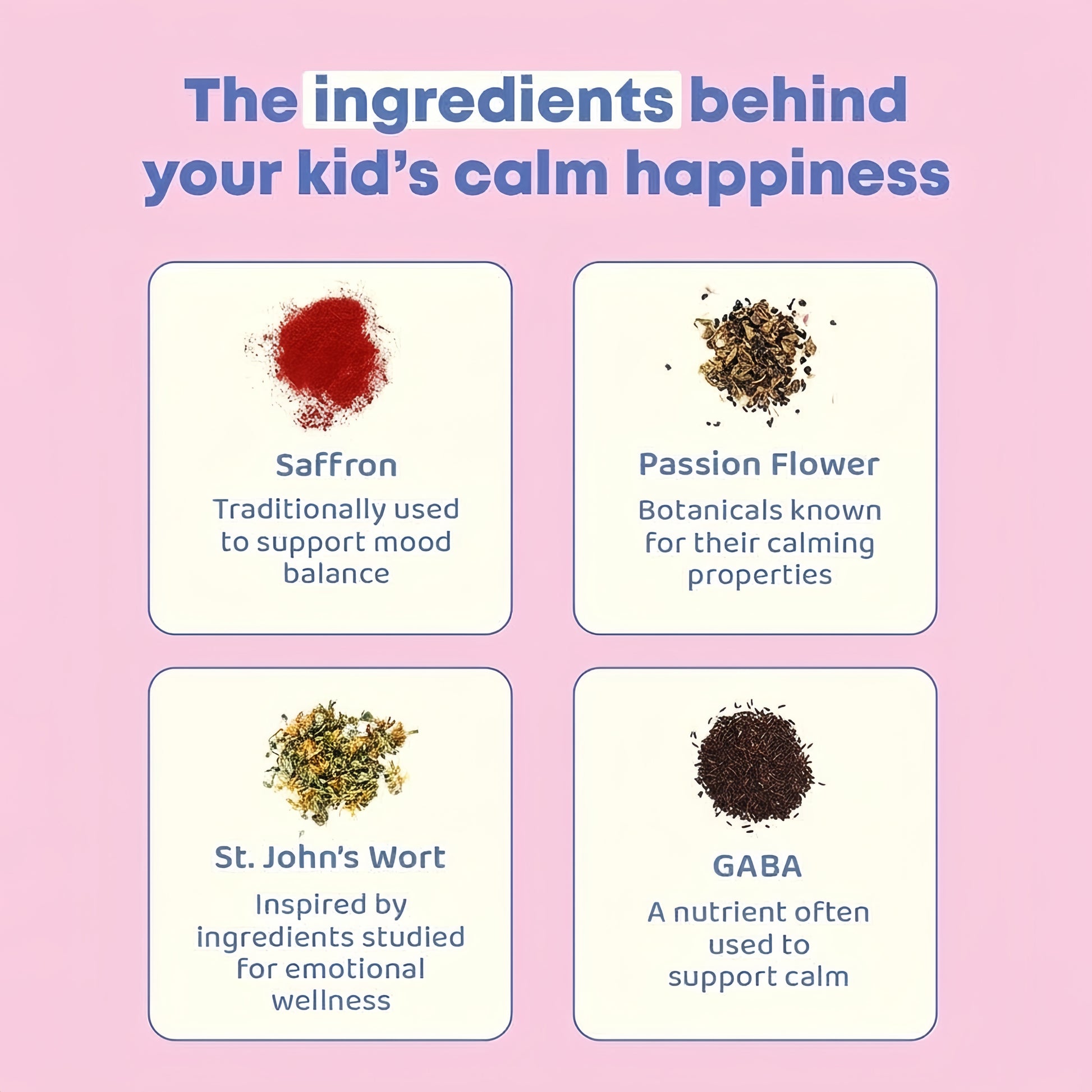 They are made in FDA-registered, cGMP-certified facilities and third-party tested because your child's safety is non-negotiable. We use saffron extract, passionflower, and St. John's Wort to support healthy mood regulation and emotional balance. The gummies are sugar-free, gluten-free, non-GMO, and contain no artificial colors or flavors. If your child has known allergies, review the ingredient list. We're careful, but you know your kid's history better than anyone.